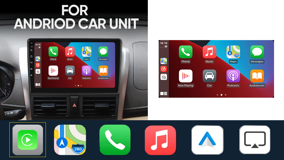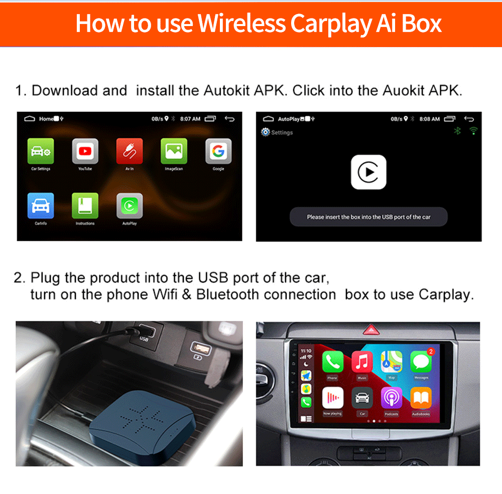 5. versão sem fio: iphone com fio/cabo sem fio conectado ao carplay, telefone android cabo com fio conectado ao automóvel android