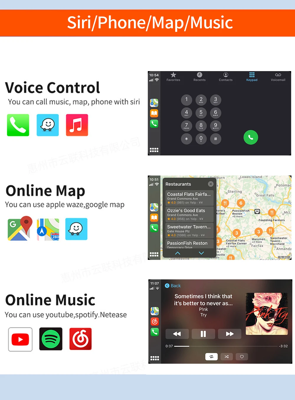3. funções: controle de voz, mapa on-line, música, assistir vídeo/moives etc…