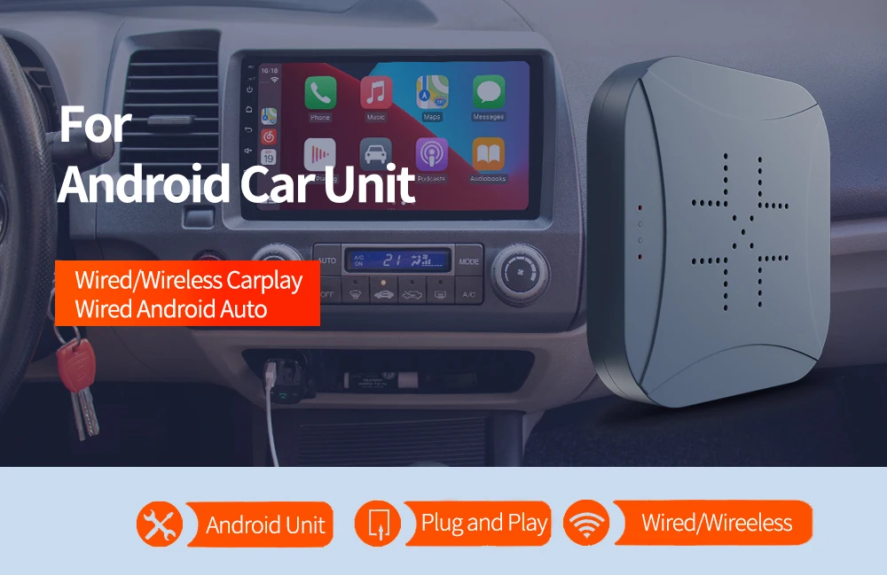 Jiuyin sem fio carplay dongle adaptador usb com fio android auto para modificar android rádio do carro ligação inteligente ios telefone interconexão