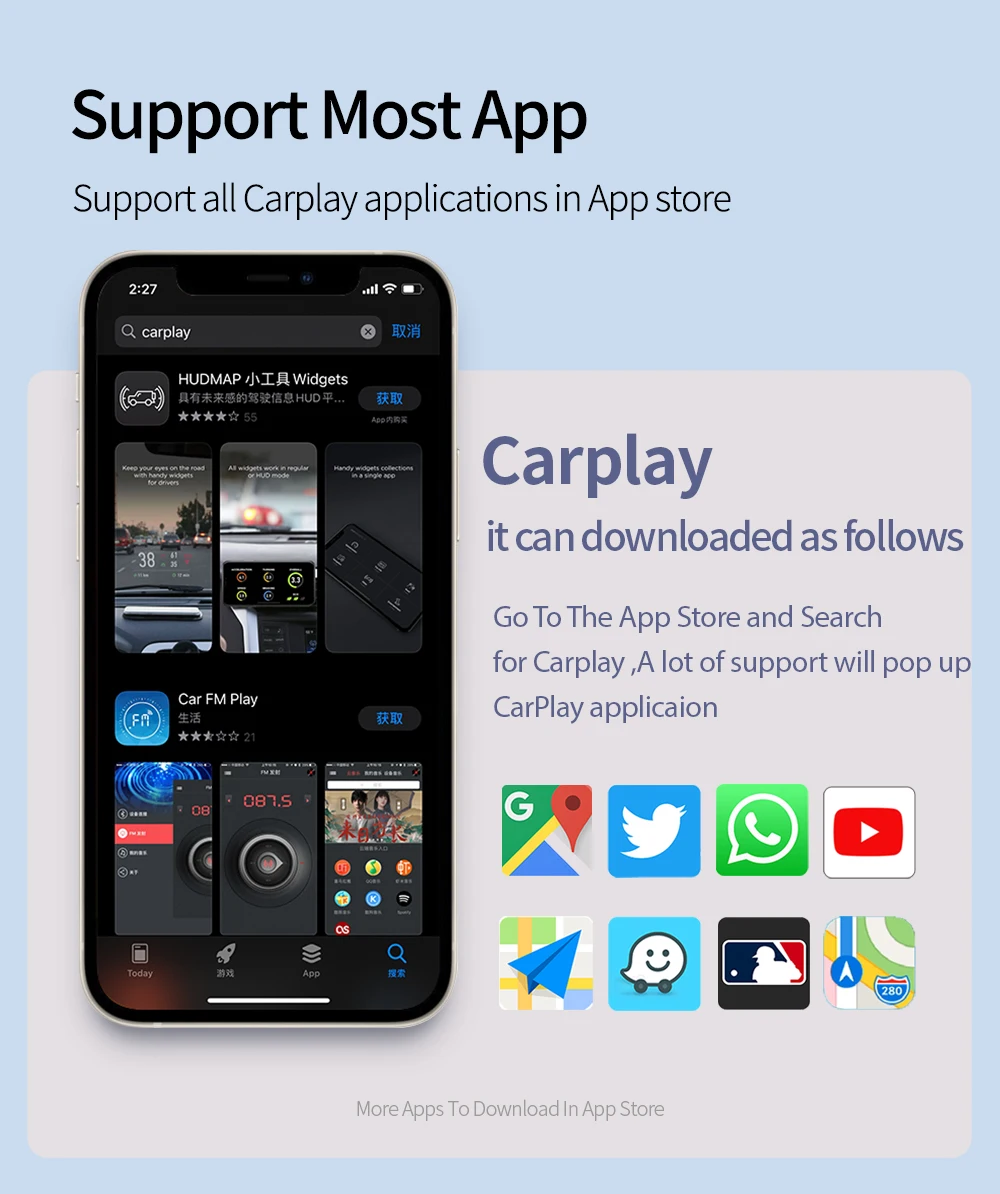 -Suporte app: google maps. youtube, waze, whatsasapp, twitter, spotify…