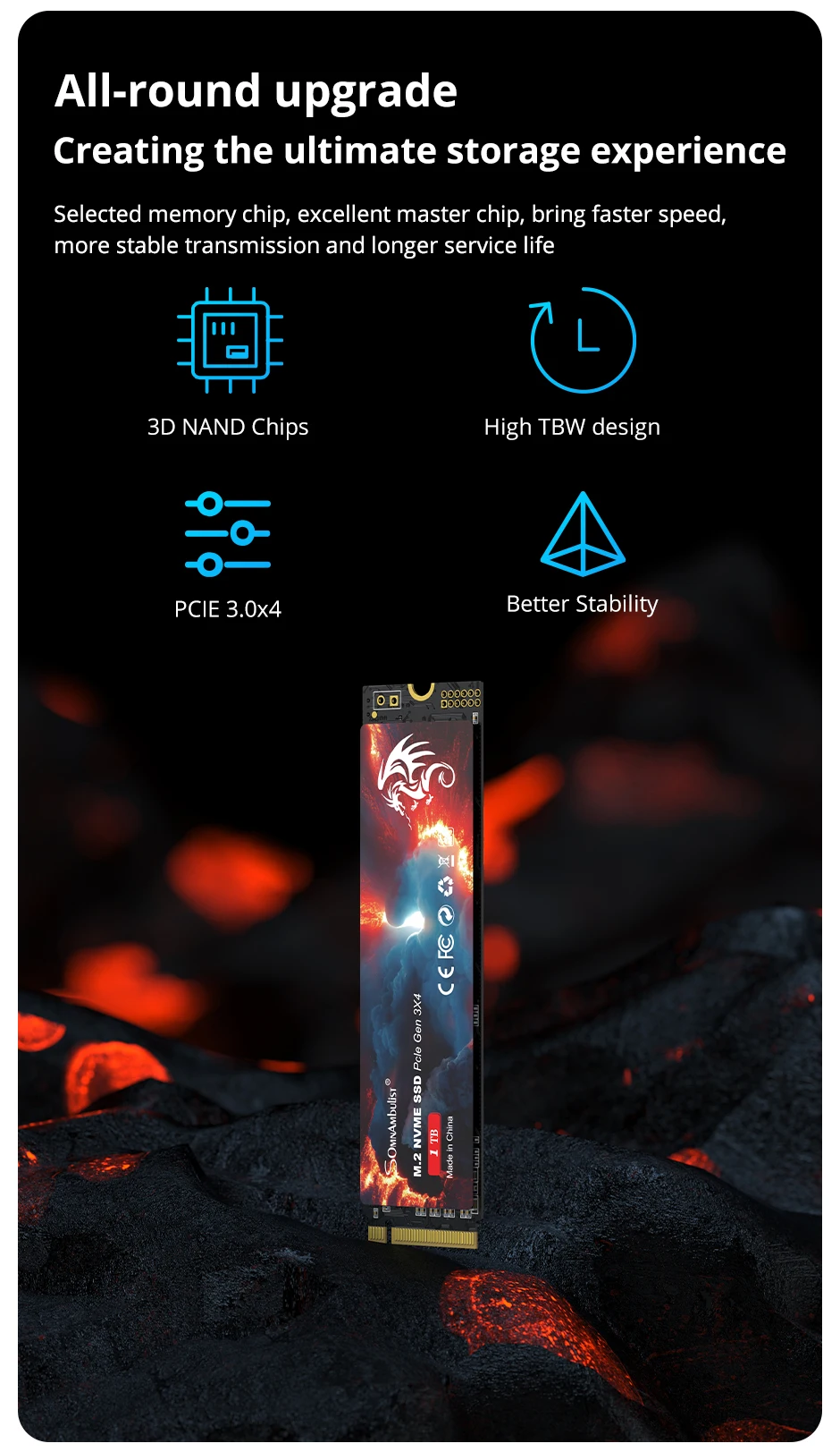 • Alta capacidade de armazenamento: O SomnAmbulist SSD M2 NVME oferece alta capacidade de armazenamento de até 1 TB, proporcionando amplo espaço para suas necessidades digitais.