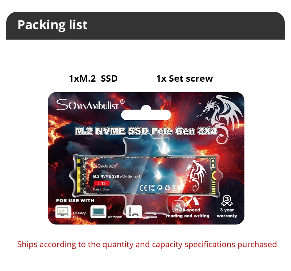 Pacote incluído:1X unidade de estado sólido M.2