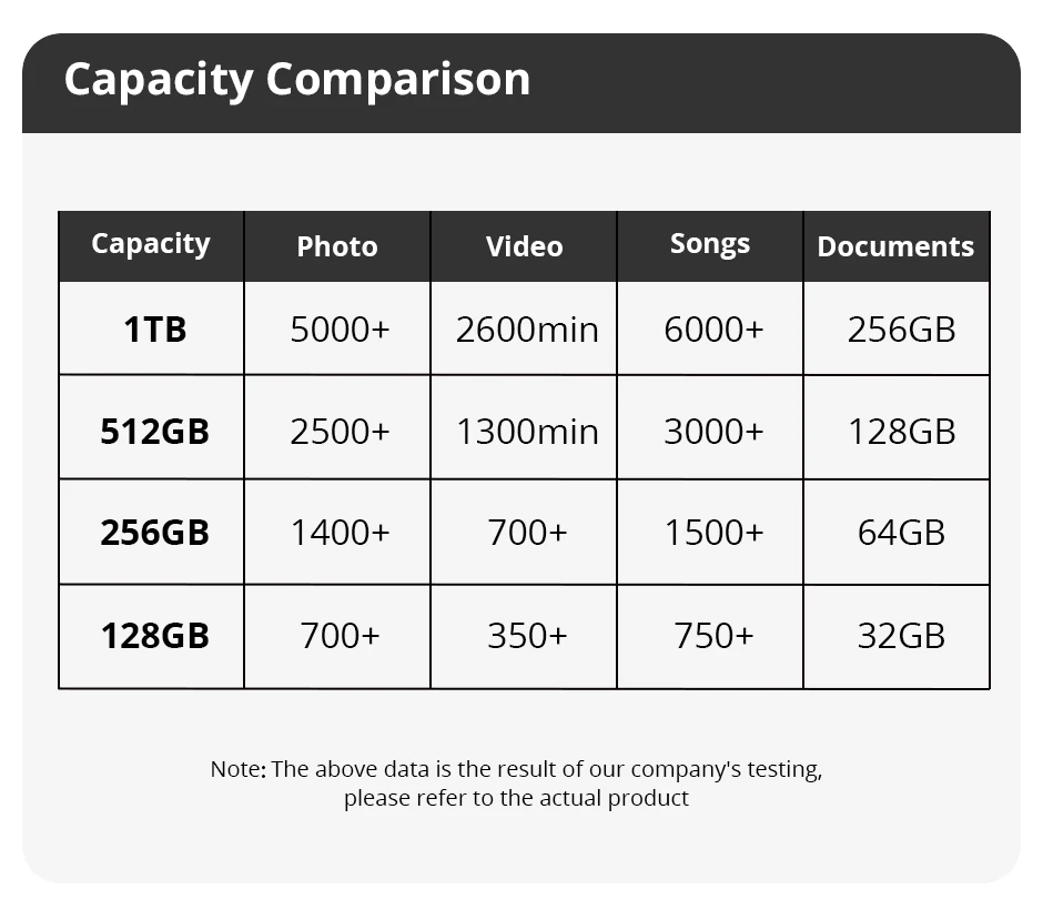 Capacidade: 128 GB 256 GB 512 GB 1 TB